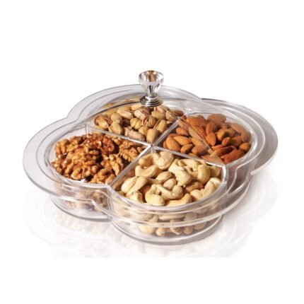 6-Compartment Dry Fruit Tray with Dome Cover ā Elegant Serving Dish for Nuts, Sweets, Snacks & Candy ā BPA-Free Plastic with Transparent Lid
