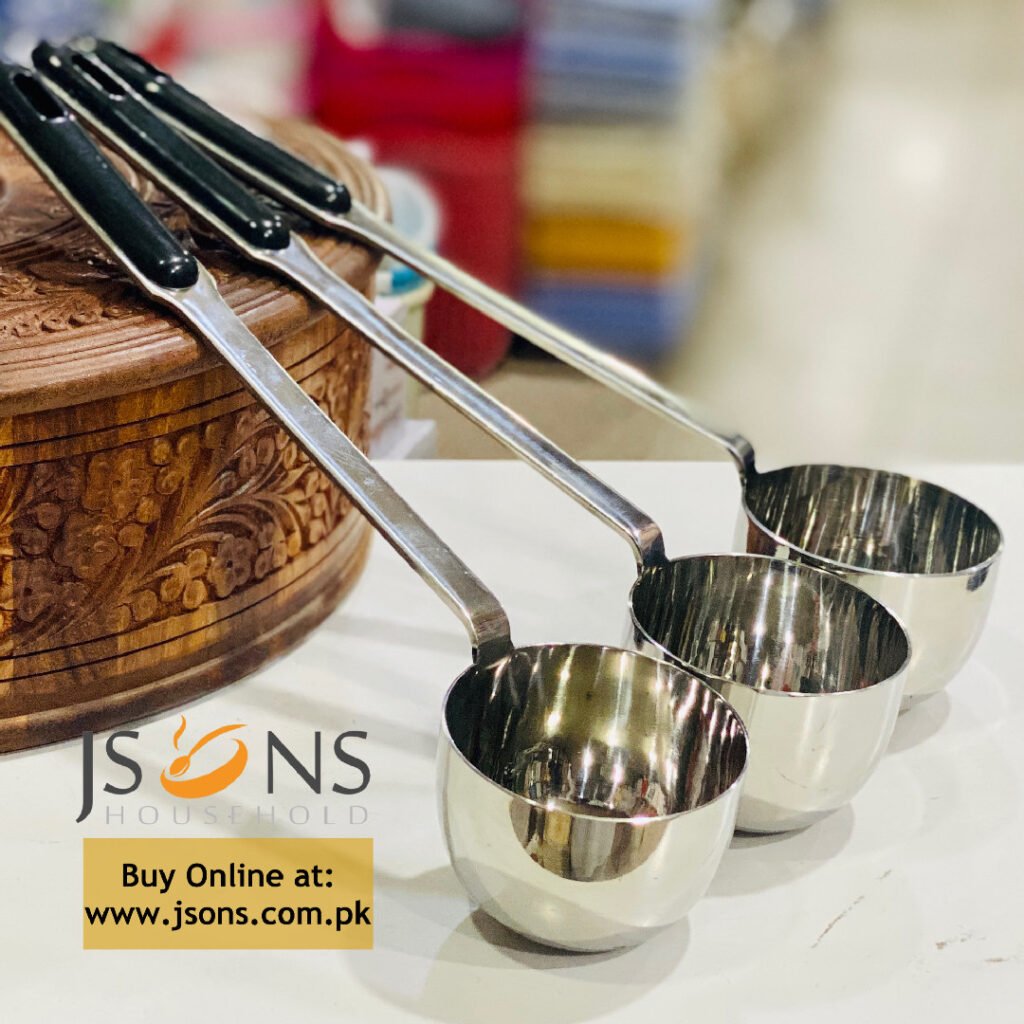 Steel Cooking Spoon Wood Handle (Set of 3)