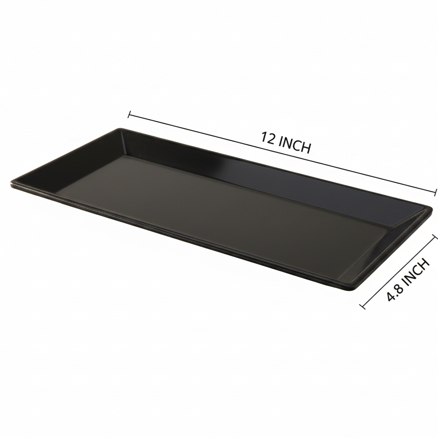Perfectly Sized for Versatility Measuring 12 inches in length and 4.8 inches in width, this elongated tray offers a unique shape that fits easily on crowded tables. It is the ideal canvas for lining up sushi rolls, presenting freshly grilled kebabs, arranging bite-sized desserts (mithai), or serving savory appetizers.