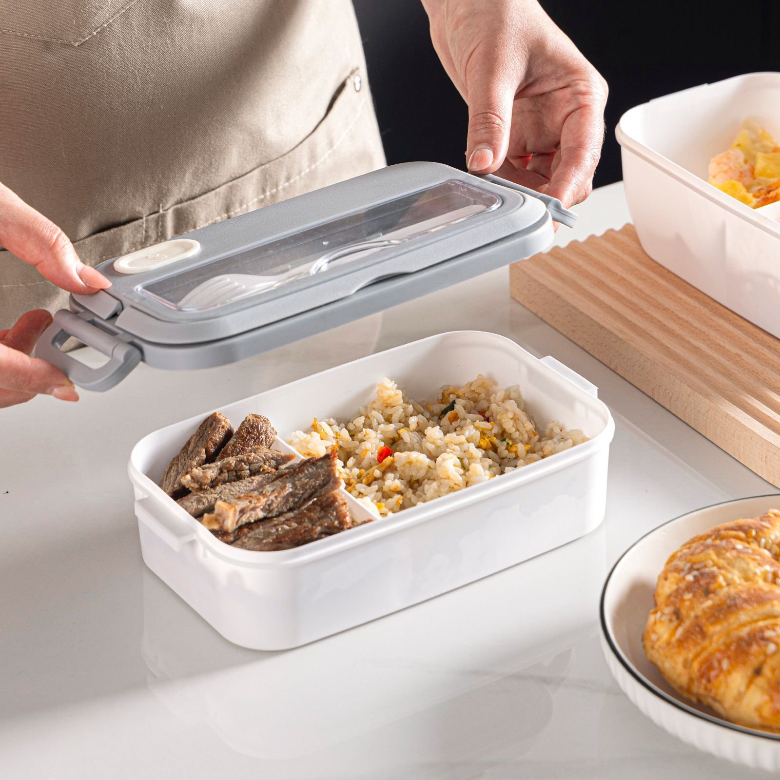Simplify your daily routine with our premium Multi-Compartment Lunch Box. Designed for convenience, it ensures your main course, sides,
