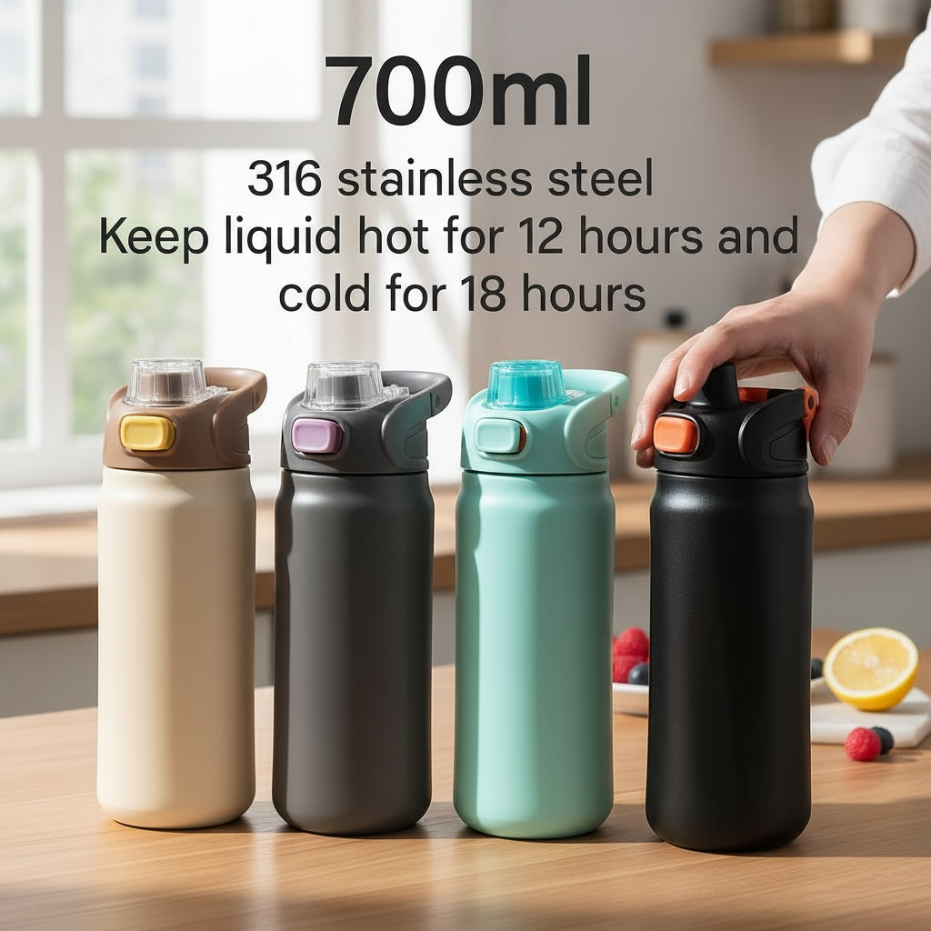 Why Buy This Product? Investing in this flask means saying goodbye to lukewarm drinks and flimsy plastic bottles. It offers a generous 700ml capacity—enough to keep you hydrated for hours—while using 316 stainless steel, which is safer and more durable than the common 304 grade. With its ability to maintain heat for 12 hours and cold for 18 hours, it is the most reliable thermal companion available for the Pakistani market.