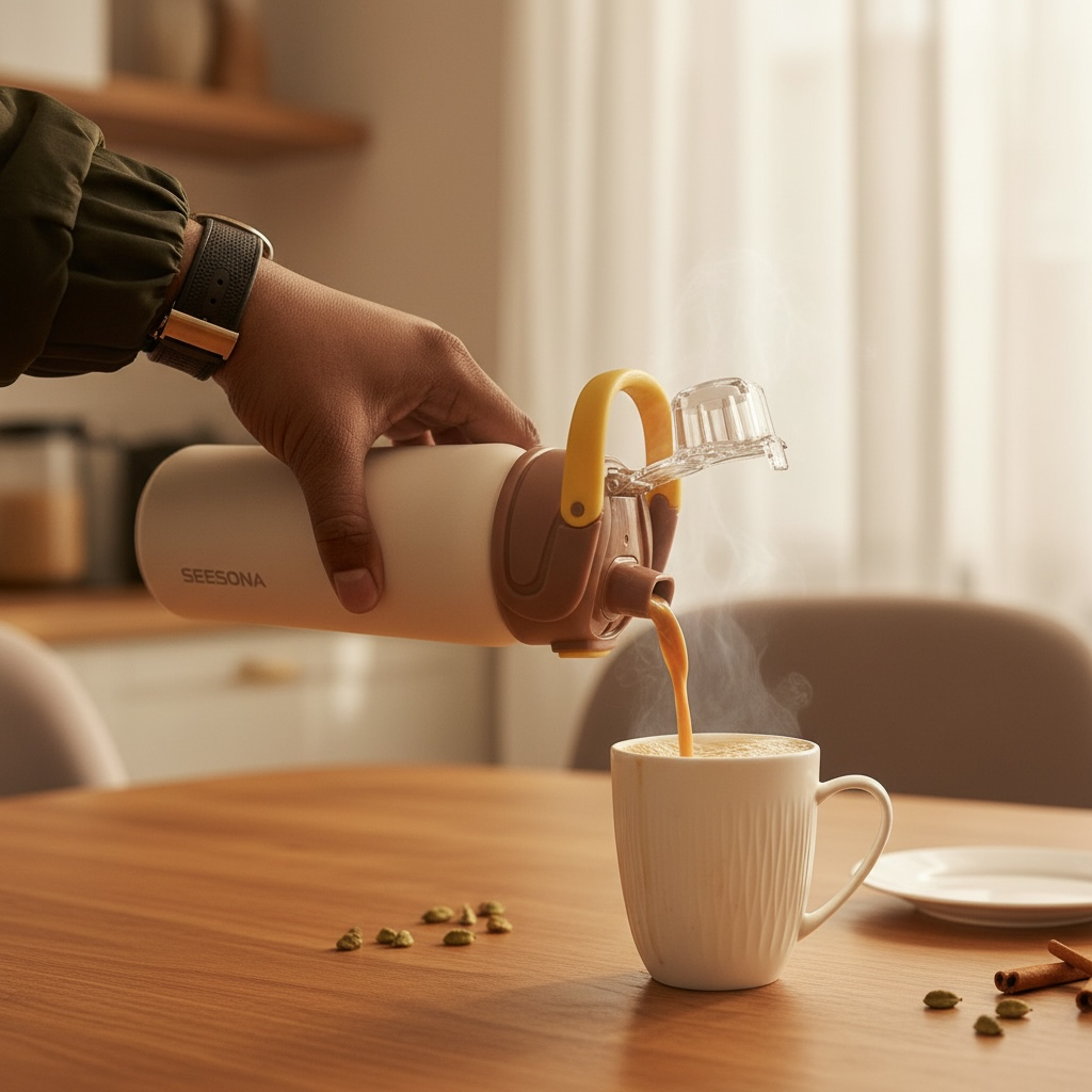 Smart Design & Easy Usage Operating the Seesona flask is effortless. The secure locking mechanism prevents accidental spills in your bag, while the wide-mouth opening makes it easy to add ice cubes or clean the interior thoroughly. To get the best results, we recommend pre-heating the bottle with hot water for 2 minutes before filling it with tea, or pre-cooling it with ice water before filling it with a cold beverage. The integrated carry handle makes it easy to grab and go, whether you’re walking to a meeting or hiking a trail.