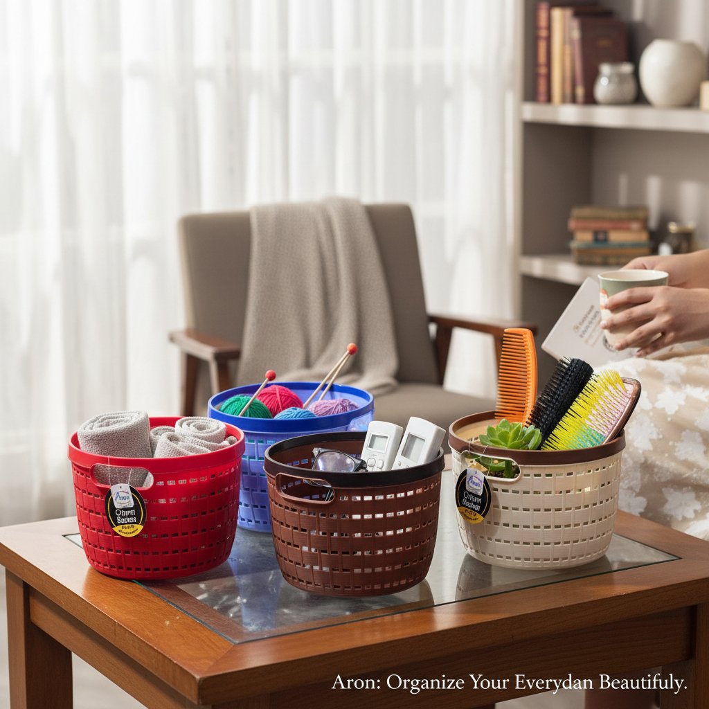 Keep your small essentials organized with the Aroni Orient Basket. This durable plastic basket is perfect for decluttering any room in your house.