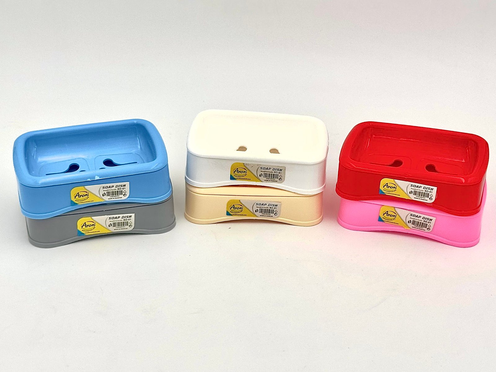 Keep your bathroom organized with the Aroni SD-51 Plastic Soap Dish. Designed with a curved base for stability, this durable holder prevents soap from slipping and keeps your countertops clean. It is an essential, budget-friendly accessory for every Pakistani household.