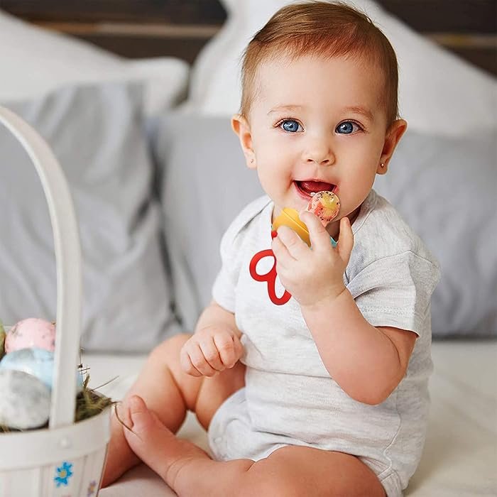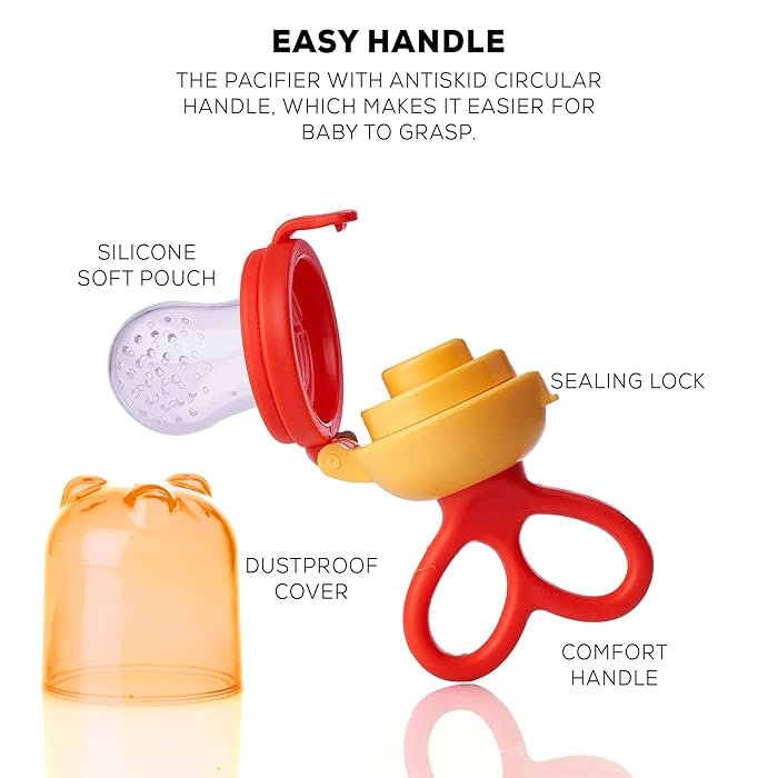 Teething ka Sakoon Jab bacho k daant nikal rahy hotay hain, to unhein chirchirapan mehsoos hota hai. Is Fruit Teether mein thanda phal ya barf ka tukra dal kar deny se un k masooron ki sozish kam hoti hai. Ye dual-purpose product hai jo feeder k sath sath teether ka kaam bhi karta hai.