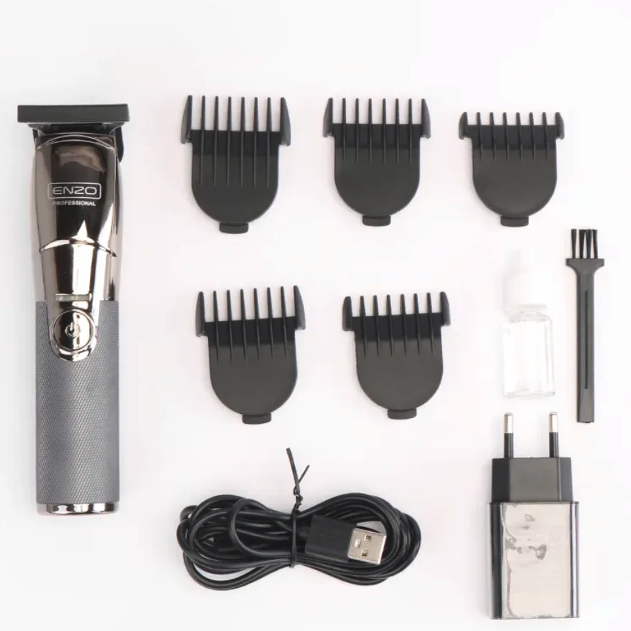 The Enzo EN-5034 is available in its signature silver-chrome and grey colorway, giving it a professional, modern look suited for both personal grooming kits and barbershop display counters.