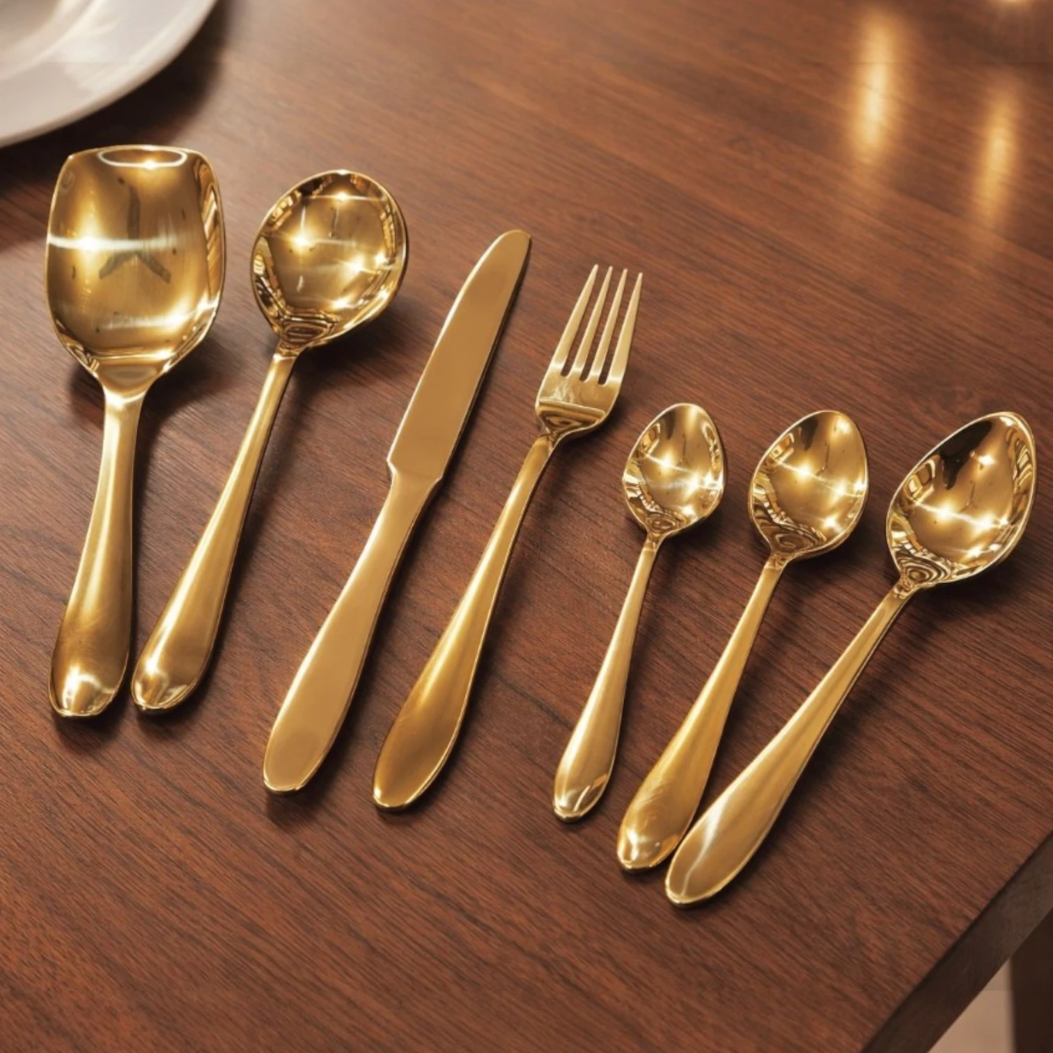 This cutlery set is ideal for daily meals, family dinners, guest serving, and special occasions. It is suitable for home dining tables, dinner parties, gatherings, and festive events. The golden finish makes it perfect for formal table settings, wedding dinners, and celebration meals.