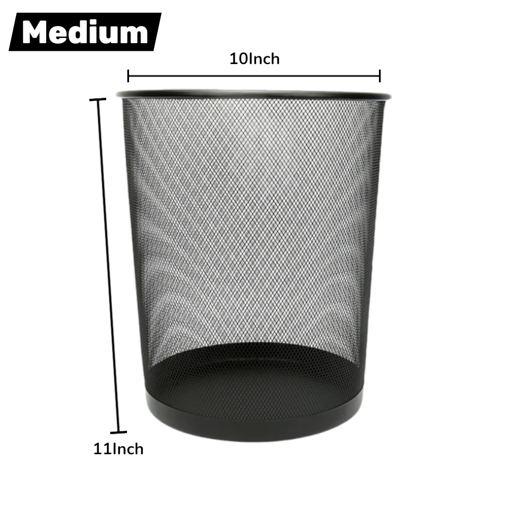Black Metal Dustbin – Round Mesh Waste Bin for Home & Office