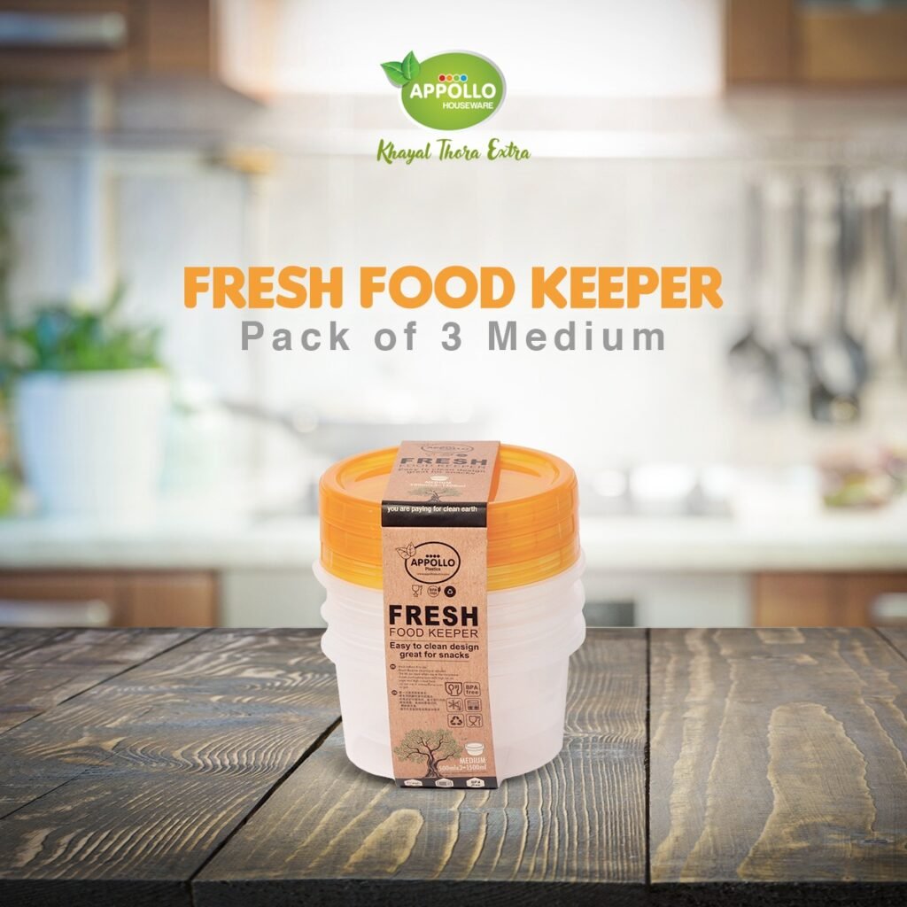 Fresh Food Keeper ā Medium Size Round Container Set (3 pcs) ā BPA-Free, Biodegradable Snack Storage Boxes ā 500ml to 1500ml Capacity