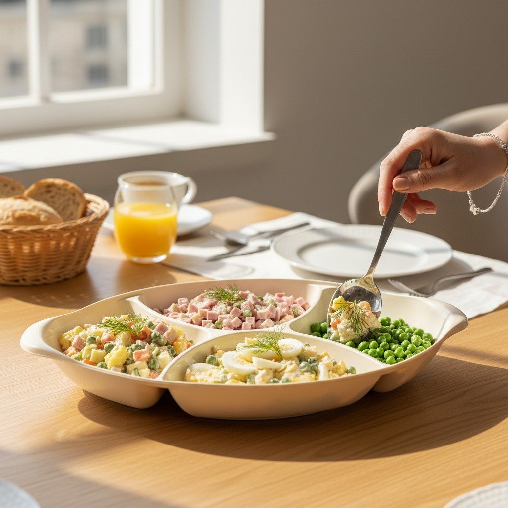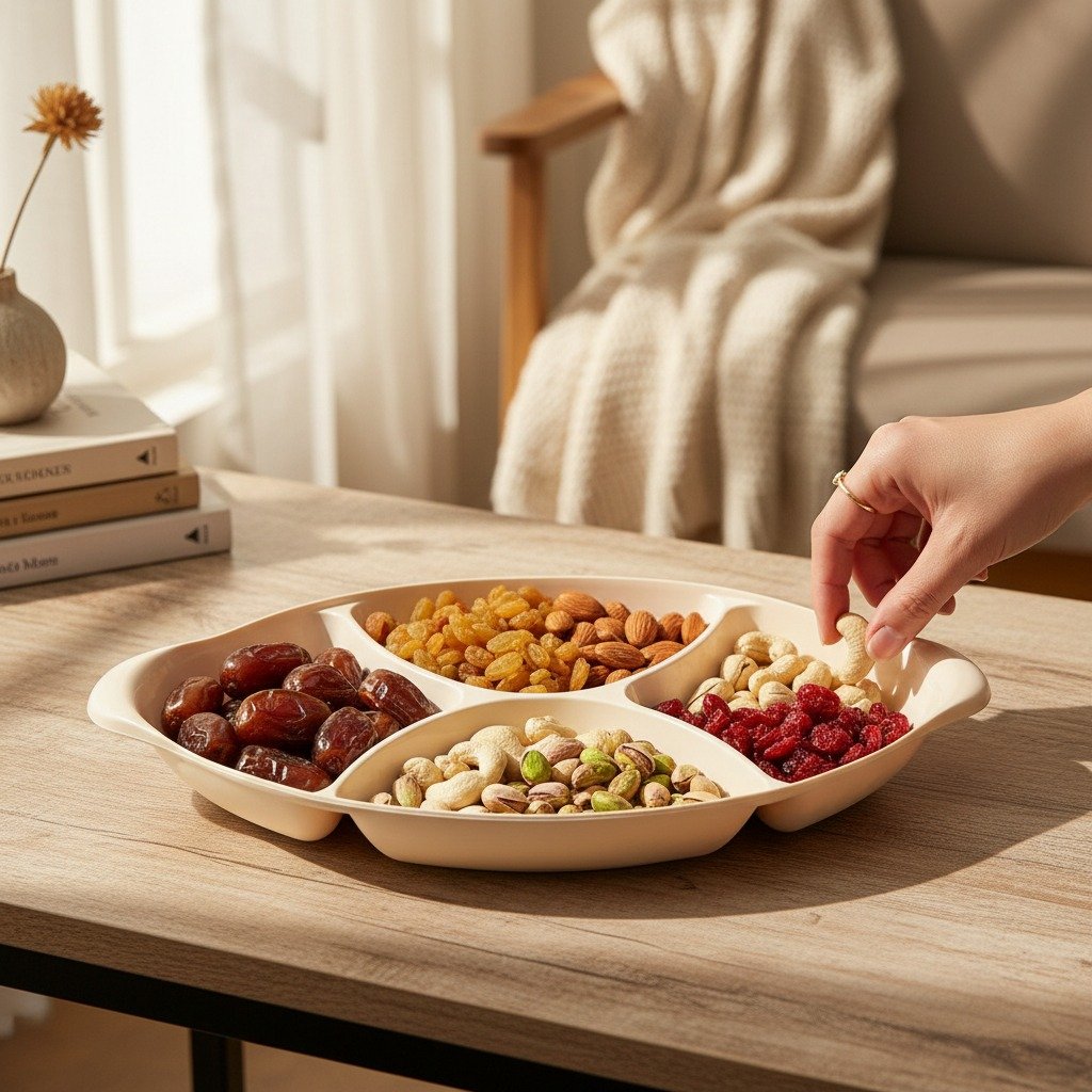 This tray is designed mainly as a food serving tray for home use. It is commonly used for dry fruit serving, snack platters, and salad presentation during tea time, family gatherings, or casual meals. The partitioned layout allows you to serve different items at once while keeping each food separate and visually appealing.