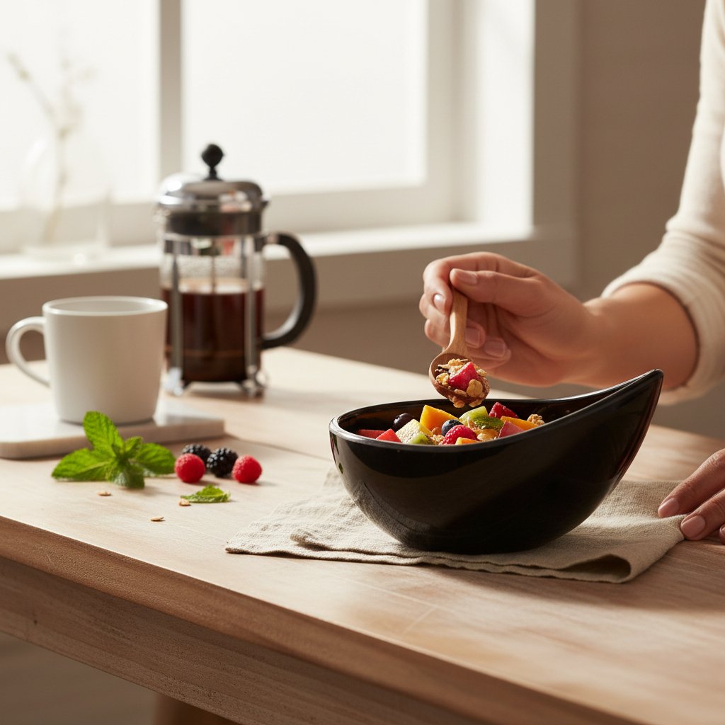 Material, Quality & Durability Ye bowl high-grade food-safe melamine se bani hai, jo ise nihayat mazboot aur unbreakable banati hai. Ceramic bowls ke muqable mein ye bohot halki (lightweight) hai magar girne par toot-ti nahi, jo ise bachon wale gharon ke liye nihayat safe banata hai. Iska glossy black finish na sirf stylish hai balki stain-resistant bhi hai, jis se ye saalon tak naye jaisi rehti hai.