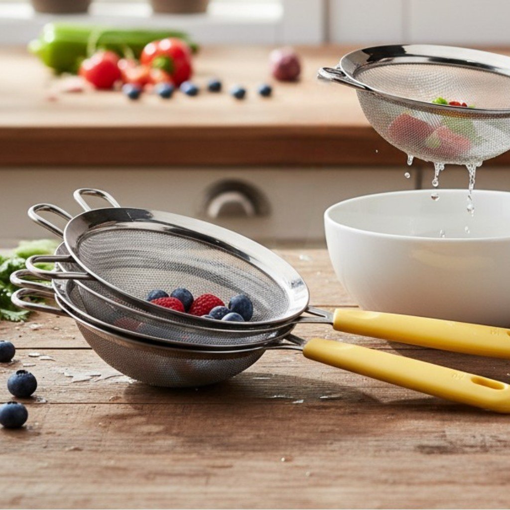 Kitchen me rozana use hone wali cheezon me ek achi quality ki channi bohat kaam aati hai. Ye stainless steel fine mesh strainer chai chaan-ne, juice filter karne, fruits wash karne, ya flour sift karne ke liye practical size me available hai. Is ka fine mesh design choti se choti particles ko rok leta hai, jis se liquid clean nikalta hai.